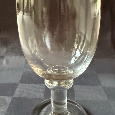 Holmegaard glas drikkeglas i klart glasmateriale. Glasset har en rund form med en bred fod og en kort stilk. Velegnet til servering af forskellige drikkevarer.
