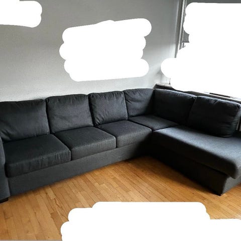 Sælger min EGENSE 3-personers sofa med chaiselong i mørkegråt stof (samme model som den fra JYSK).