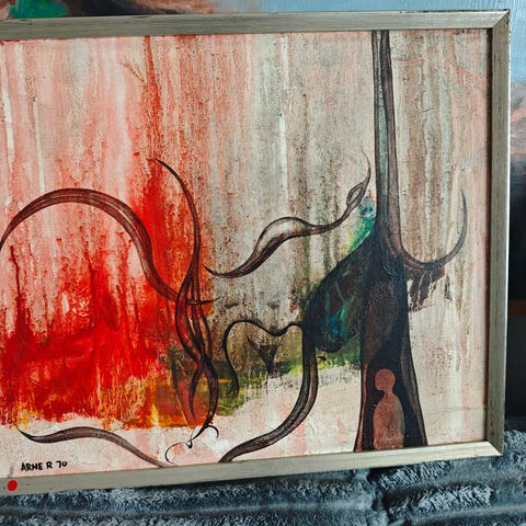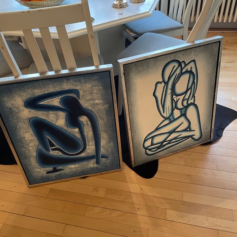 Lærred er 40x50 cm. Begge lærreder fremstår uden skader/slitage. Rammer har lidt skrammer.