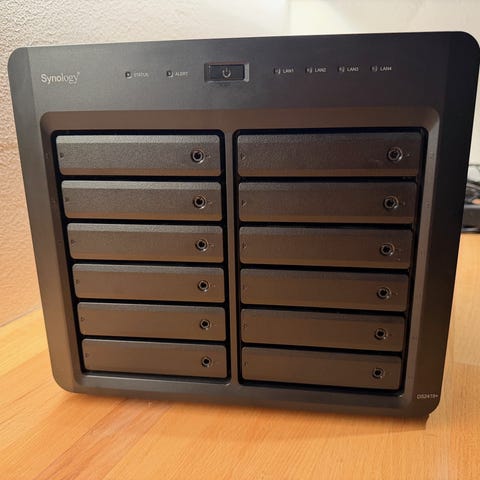 Synology DiskStation DS918+ NAS med 4-bay Inkluderer 4x10TB Seagate IronWolf Pro harddiske. 2x256 GB Nvme harddiske til cache. 8 GB Ram (4 GB ekstra original Synology). DX213 expansion boks med 2 bay inkl 1 TB SSD disk NY, USB-porte og 2xnetværksforbindelse. Designet til datalagring og backup og meget andet med kølesystem bestående af to blæsere på bagsiden.