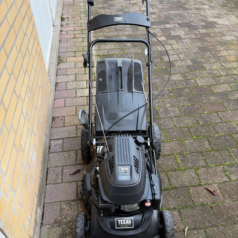 Texas plæneklipper i sort farve med en støjniveau på 96 dB. Maskinen har et robust design og er velegnet til græsslåning i private haver. Den er udstyret med håndtag til styring og hjul for nem bevægelse på græsplænen.Virker som ny med service og ny tændrør.