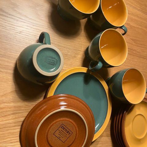 4 sæt vintage Denby Harlequin blå/grøn kop/underkop