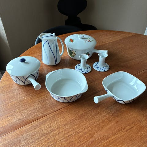 Sælger disse 4 helt intakte sæt bestående af kop/underkop i blå/grøn vintage Denby Harlequin til en SAMLET AFHENTNINGSPRIS af KUN kr 500 - ved forsendelse tillægges porto.