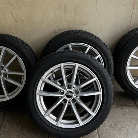 225/55R17 (ET37) 17 tommer original BMW alu fælge med Goodyear Ultra Grip vinterdæk. Massere af mønster tilbage. (Se billeder)
