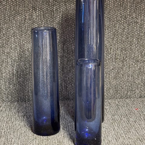 Smuk blå Holmegaard cylinder vase. Ca. 23 cm. Per L. 16910.
