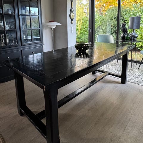 Flot håndlavet franske massivt egetræsspisebord. Velholdt står pænt.