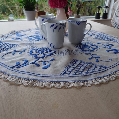 Fin lille dug i tyndt bomuld med håndbroderet mussel mønster