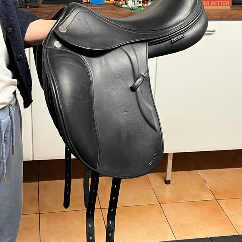 Sadle exchange Dressursadel 17,5" i sort læder. Sadelens design er til dressurbrug med komfortable sæde- og knæpuder. Fremstillet i holdbart materiale med justerbare stropper og en solid sadelgjord. Velegnet til ryttere, der søger en funktionel og robust sadel med et fantastisk sæde til dressur.