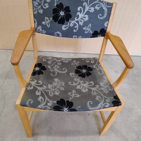 Ældre stol, meget velholdt. Ingen huller eller stof der er slidt eller bleget.