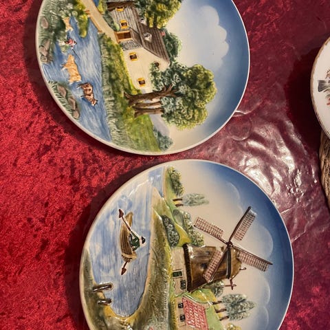 Herend Historiske Porcelænsplader, sæt med 6 stk. Hver tallerken har et portræt af en historisk person, dekoreret med detaljerede mønstre og guldkanter. Diameter og materiale er porcelæn. Velegnet til vægophæng som dekorative elementer.