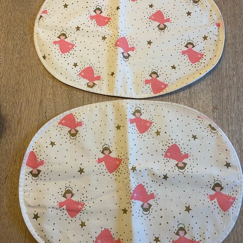 Retro dækkeservietter fra 70’erne. Mærket er Sødahl. Farverne er i rigtig flot stand og ikke falmet. Ingen huller eller løse tråde. Sættet består af 7 dækkeservietter og 1 rund skåner, der typisk bruges midt på bordet under en plante, skål eller lignende. Røg- og dyrefrit hjem.