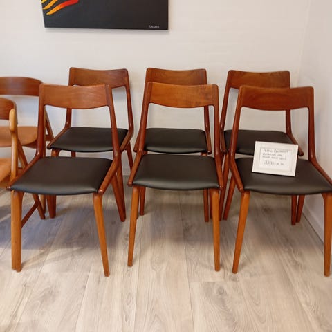 6 stk. Alfred Christensen “Boomerang” spisestuestole – ca. 1950’erne