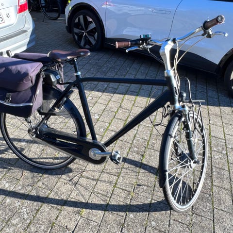 Batavus Elektrisk cykel til mænd i sort farve. Cyklen har elektrisk motor for assisteret kørsel og er designet til komfort og funktionalitet.