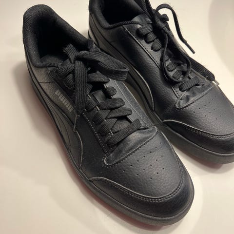 Puma sneakers til herre i størrelse 45. Skoene er hvide med blå detaljer og har snørelukning. De er lavet af materialer, der sikrer komfort og holdbarhed ved daglig brug. Brugt 1 gang