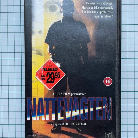 VHS Nattevagten. Prisen er 35kr. Kan afhentes efter aftale eller sendes for købers regning.