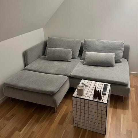 SØDERHAMN som er passet og plejet men vasket 500 gange så betrækkets lynlåse har set bedre dage. Men den er ren og velfungerende. Den kan skrues sammen på kryds og tværs.