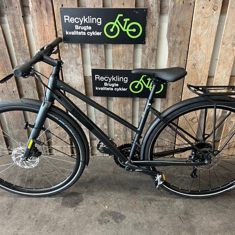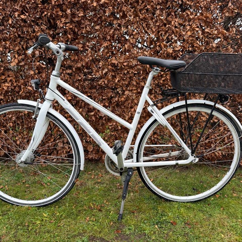 Rigtig god, velkørende og velholdt cykel, som er som ny, med 7 indvendige Shimano gear, 56 cm. alu. stel, lås, lygter, justerbar frempind og 6 mdr. garanti. Cyklen er nyserviceret og har fået nyt gearskifte, nye håndtag, ny klokke, nye bremseklodser, nyt bremsekabel, ny sadel, nye pedaler, ny støttefod, 2 nye dæk, 2 nye slanger, ny kæde og nyt gearhjul.