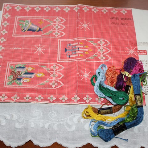 Færdig mål hvis det er en Mellemlægsserviet 20*20 cm på hvidt hørlærred 10 trådet.