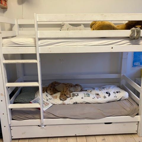 Foræres væk da behovet ikke længere er der for en køjeseng. Madrassen medfølger ikke. Mål 210 x 85.