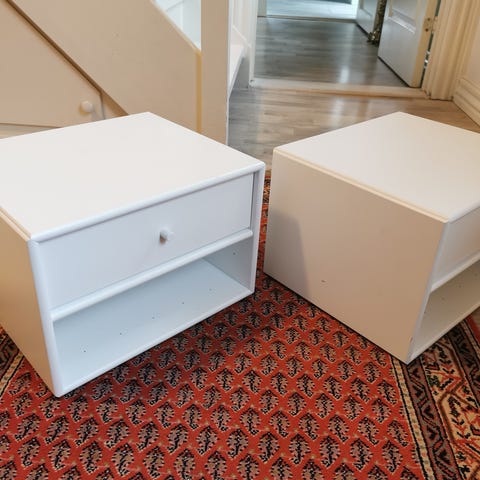 Sengebordene har ben, som kan afmonteres, så de kan hænge på væggen.