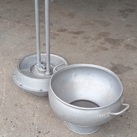 5 liters mælkejunge i aluminium min 70 år gammel. Har været brugt til transport af flydende softice. 30cm høj, åbning 12,5cm.