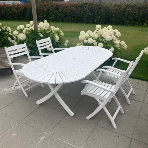 Hvidt udendørs TripTrap Havemøbelsæt med 2 stole og bord i træ