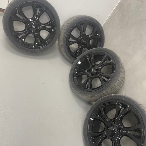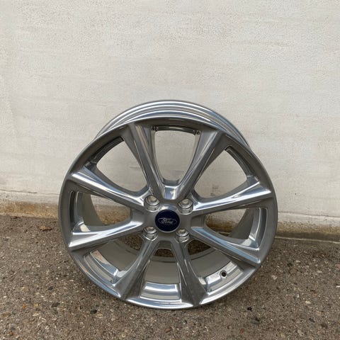 Ford Alu fælge med dæk i koks/sølv . Fælgene er 18 tommer i størrelse og er monteret med dæk, der har et mønsterdybde på 7 mm