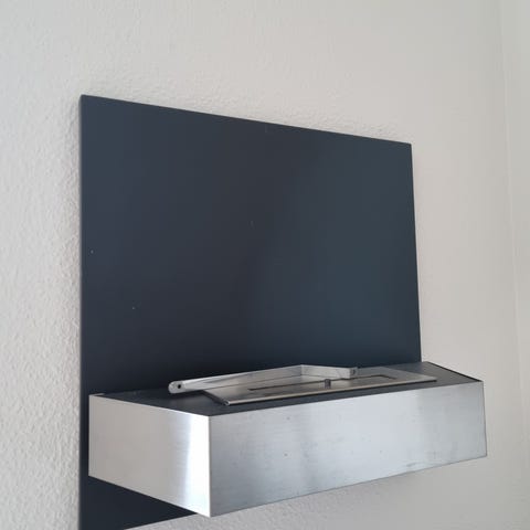 Biopejsen har et brandkar på 1,5 liter, hvilket giver op til 4 timers brændetid på en fuld opfyldning. Er fremstillet i sortlakeret stål og skal blot monteres på en brandsikker væg med de medfølgende skruer.
