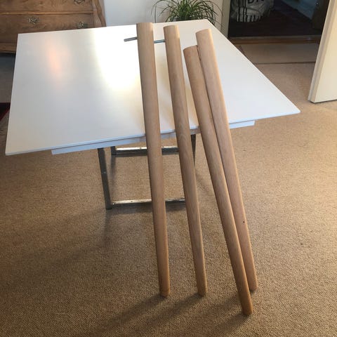Sælger et elegant, hvidt rektangulært bord med sorte ben. Bordet har to praktiske tillægsplader, som gør det én meter længere – ideelt til gæster, familiebesøg eller ekstra arbejdsplads.