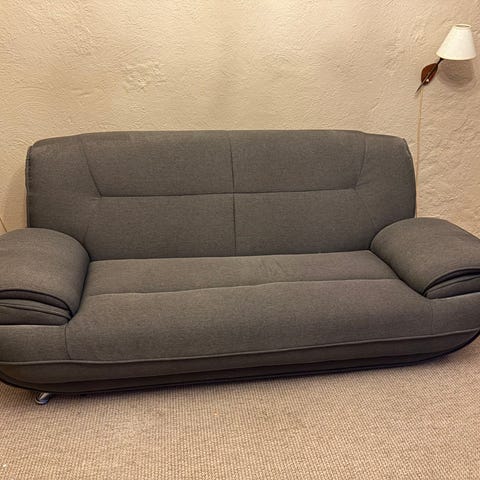 Fin, men brugt sofa, der er et lille hul. Den er gratis og kan efter aftale afhentes i Bagenkop på Langeland.