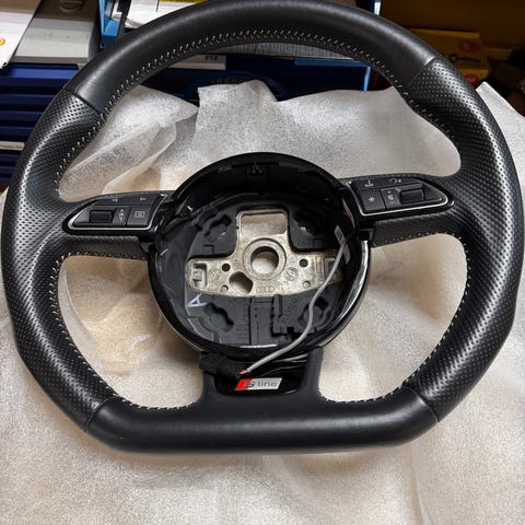 Sælger dette lækre VW R-Line rat som aldrig er blevet brugt (dsv!). - brugte lang tid på at anskaffe de adaptive fartpilot knapper, men hvis du ikke har brug for dem til din bil, kan et sæt knapper til biler uden adaptiv fartpilot tilkøbes for 500kr merpris.