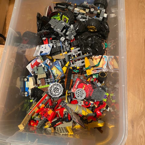 LEGO NINJAGO LEGO klodser og sæt i forskellige størrelser og farver. Indeholder diverse byggeelementer, figurer og tilbehør. Egnet til børn og samlere, der ønsker at bygge og udvide deres LEGO NINJAGO samling. Der er 4 kasser der vejer 24, 751 kg fratrukket kassernes vægt som er 2,8 kg i alt. Således 24 kg løst Lego og 751 gram. Så er der tre uåbnet kasser en star wars obi-wan kenobi, en architecture trafalgar square. En Lego creator med en lastbil og to fly. Forsøger at finde en kilopris med det er tilsyneladende ikke så nemt. Der er meget jurrasic og ninja.