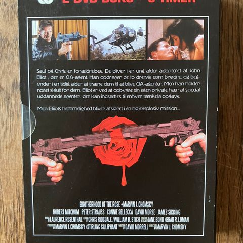 Rosens Broderskab DVD Box indeholder 2 DVD'er med en samlet spilletid på cirka 3 timer. Boksens omslag viser billeder fra filmen og indeholder information om skuespillere som Robert Mitchum, Peter Strauss og David Morse. DVD'erne er placeret i en sort plastikboks med cover. Produktet er en samling af filmen Rosens Broderskab.