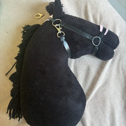 Dette er Amber, sælger da jeg dsv er stoppet med at ride hobbyhorse. Mega god stand, har været udsat for et par fald men er ikke synlig. Fra røgfrit-hjem. Trensen ka tilkøbes for 100 kr. Han koster 400 uden trense, og 500 med trense. Køber betaler også selv fragt som er 50 kr oven i prisen 💞
