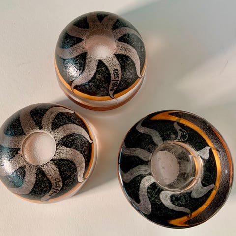 Tre fyrfadsstager. Kosta Boda. Atoll serien. Samlet kun 75 kr.