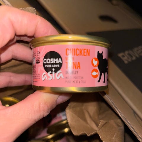 11 stk. Cosma Pure Love Tunfisk Suppe med Gulerødder 100g. Dåse med kattemad baseret på tun og gulerødder i delikat bouillon. Velegnet som ernæring til katte.