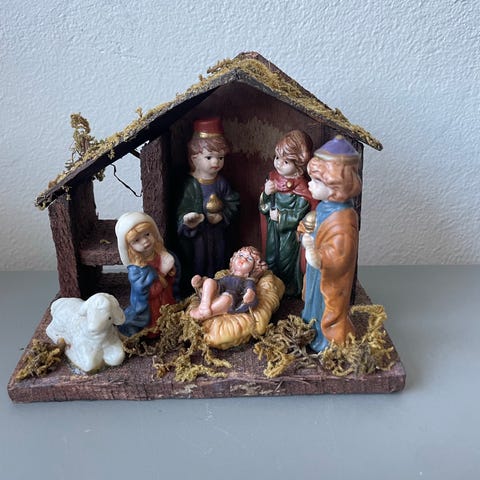 Ældre fint krybbespil med julekrybbe julepynt, krybbe
