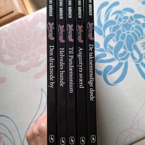 5 bøger sælges samlet. Enkelte brugstegn ses på nogle af de udvendige hjørner og buk på nogle af siderne