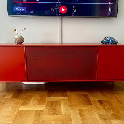 Ophængslister, vægbeslag samt skruer m.m. medfølger ikke. Udstillingsmodel.