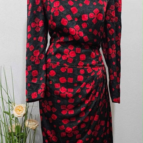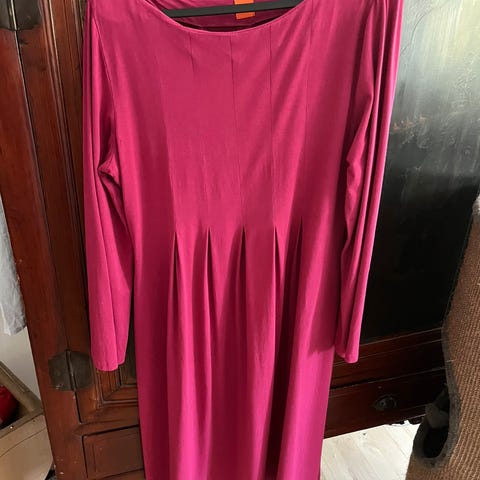Smuk julekjole - kjole syet i en lækker kraftig bomuldskvalitet i en flot Winther pink med et grafisk mønster. Den er på en gang helt klassisk og noget helt særligt.