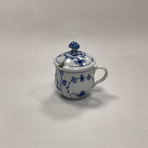 Royal Copenhagen Musselmalet Riflet Sennepskrukke med låg No. 137 VI SENDER