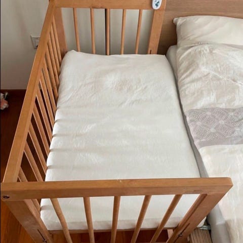 Smart bedside-crib fra Cosmic Baby Xpedition, perfekt til de første måneder, hvor baby skal sove tæt på forældrene.