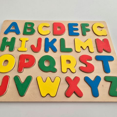 Abc tavle i træ, har gennem årene fået nogle brugsspor- se billeder.