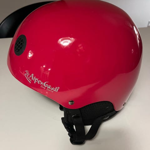 Blomstret Alpina Børne Skihjelm. Aldrig været i uheld eller blevet smidt med. Brugt i én vinter sæson af i alt 3 uger på ski. Lugter ikke af skummelt hår eller sved. Ingen defekter.