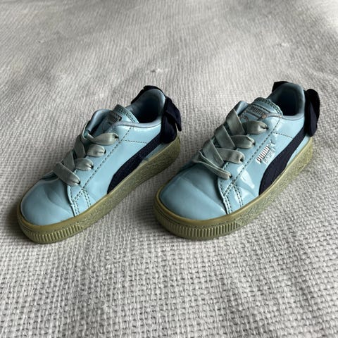 Puma børnesko til pige i størrelse 26. Skoene er rosa med detaljer i forskellige nuancer og har velcrolukning for nem tilpasning. Velegnet til daglig brug.