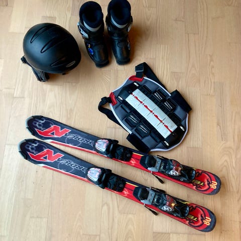 Familie skipakke med 4 sæt ski + 1 sæt snowblades.