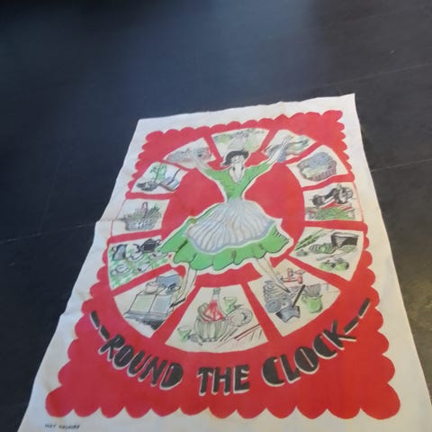 Viskestykke, Kreier, Sød kalender viskestykke fra Schweiz i 100 procent hør, med blomstermotiv. 2004.