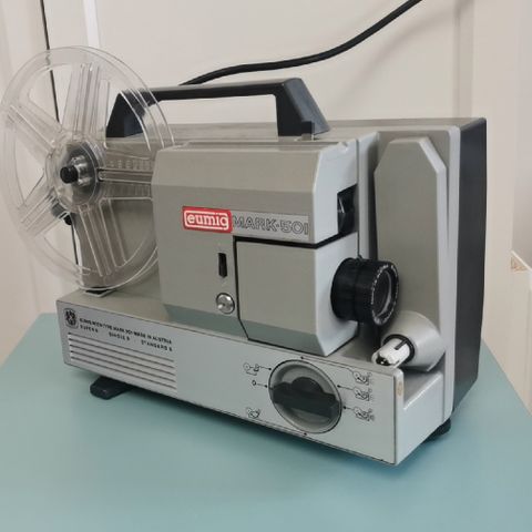 Sælger denne klassiske Eumig P8m Imperial 8mm filmprojektor i original stand og den originale blå transportkuffert.