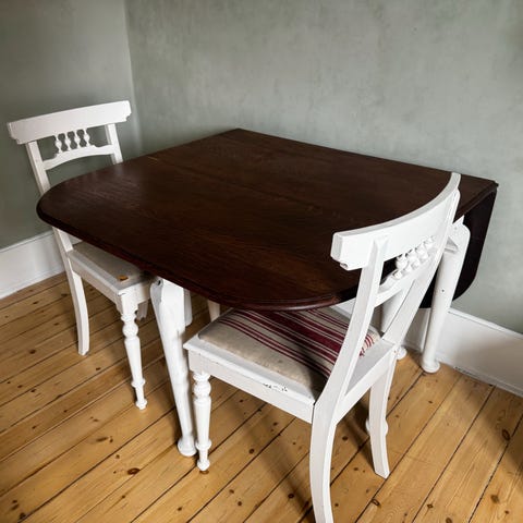 Som det ses af billederne skal det lige have en gang rengøring og sæbespånbehandling på overfladen. Måske maling alt efter ønsket stil.