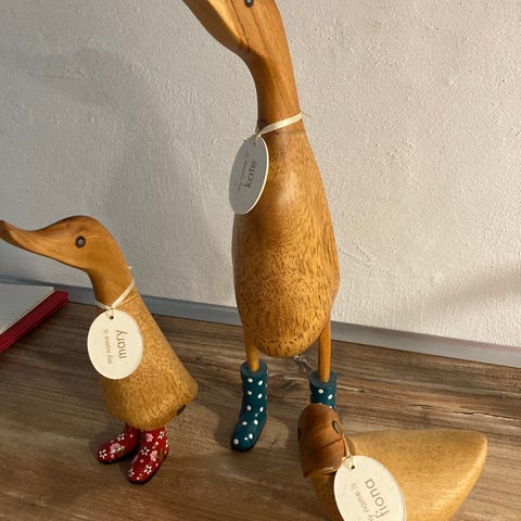 2 Dcuk Edo ænder med gummistøvler sælges. De er ca. 22 cm høje